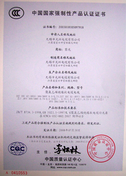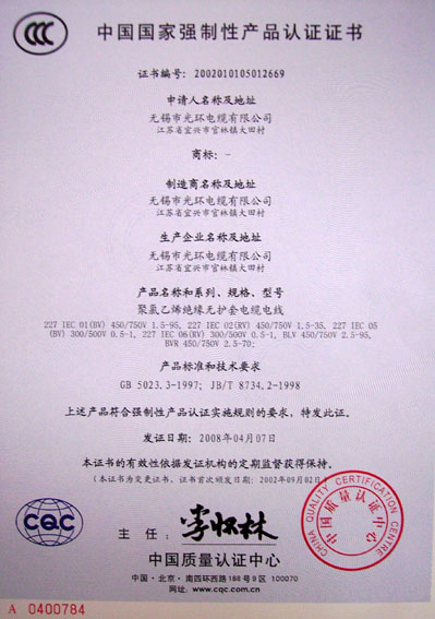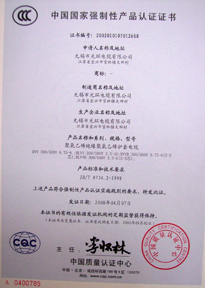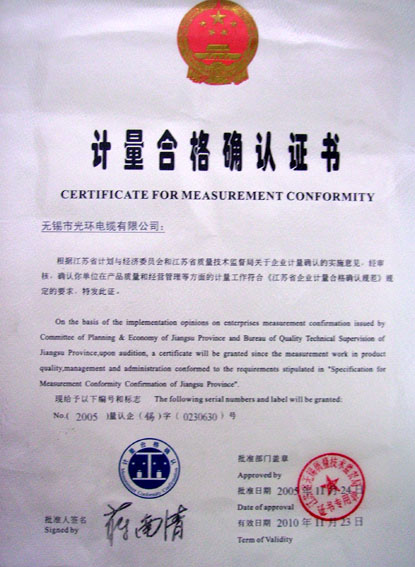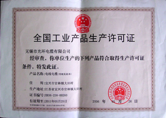 無錫市光環電纜有限公司集生產、加工、貿易為一體的專業工業企業,自一九九二年創建以來,連年產銷利潤均以翻番的幅度遞增,已成為電線電纜行業中具有較強實力的企業之一,已獲:江蘇市場用戶滿意商品稱號、ISO9001:2000國際質量體系認證、全國工業產品生產許可證、阻燃、耐火、中國電工產品認證、計量合格企業,AAA特級信用企業。