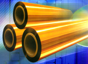 我公司是國內設備先進,單機生產能力大,產品質量好,采用流涎雙軸拉伸工藝專業生產聚酰亞胺薄膜的工廠之一,鋼帶采用奧地利berndorf的鏡面鋼帶,測厚儀采用美國EGS公司的紅外測厚儀,流涎膜頭采用美國EDI公司的自動擠出膜頭,整條流水生產線采用電腦控制。產品具有強度高、各向同性、電性能好、收縮率低、厚度公差小,外觀平整等特點。產品規格齊全,厚度范圍為13μm-125μm,寬度范圍為10mm-1040mm,長度范圍為300m-2500m(取決于厚度)。我公 司的產品主要用于電子工業的柔性印刷線路板和壓敏膠帶基材,少量用于絕緣材料。產品銷售除滿足國內需求外,主要出口國際市場。