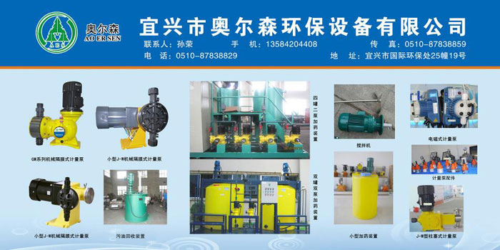奧爾森環保,生產廠區坐落于淮安市經濟開發區,環境十分優美,交通便捷。公司專業開發生產制造計量泵、加藥裝置、過濾器、污油回收裝置及水處理設備和各類環保產品,實行標準化管理。是一家具有產、學、研一體化企業,并與江蘇大學流體中心建立良好的合作關系,以科技領先,適用于社會。本公司是由一批具有數年計量泵生產經驗的專家組建起來的一家集科研、生產、銷售、服務于一體化的省級科技型股份制企業。