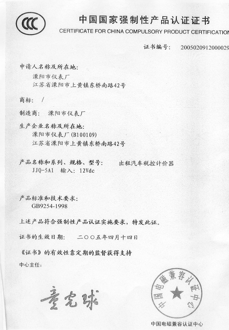 產品名稱:國家強制性產品認證證書