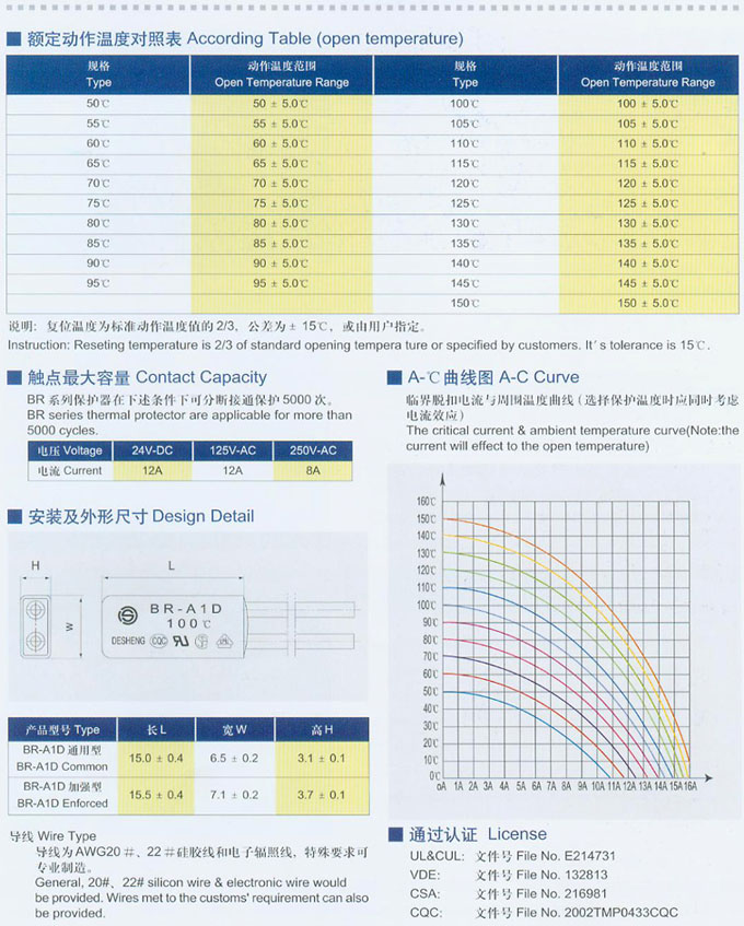 產(chǎn)品名稱:BR-A1D通用型和加強型系列熱保護器2