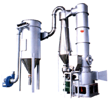 | 熱空氣切線(xiàn)進(jìn)入干燥器底部,在攪拌器帶動(dòng)下形成強(qiáng)有力的旋轉(zhuǎn)風(fēng)場(chǎng).膏狀物料由螺旋加料器進(jìn)入干燥器內(nèi),在高速旋轉(zhuǎn)攪拌漿的強(qiáng)烈作用下,物料受撞擊,磨擦及剪切力的作用下得到分散,塊狀物料迅速粉碎,與熱空氣充分接觸,受熱,干燥.脫水后的干物料隨熱氣流上升,由旋風(fēng)分離器和除塵器回收,未干透或大塊物料受離心力作用甩向器壁,重新落到底部被粉碎干燥. |