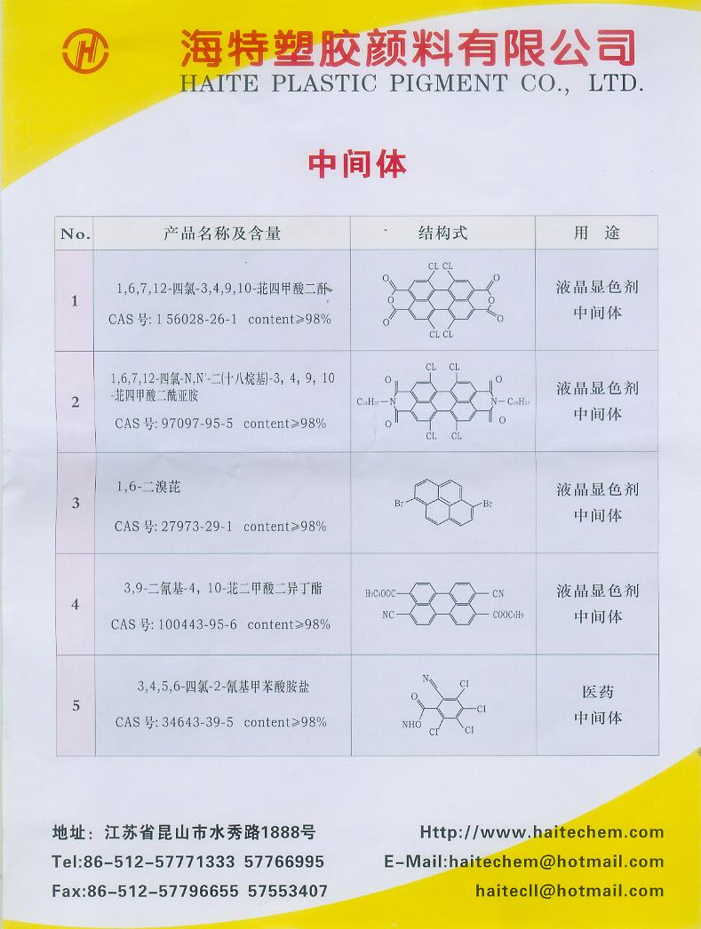 產品名稱:1.6.7.12-四氯-3.4.9.10-苝四甲酸二酐