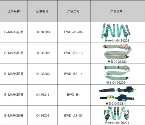 BWD公司E-MARK證書與產(chǎn)品對照表(
