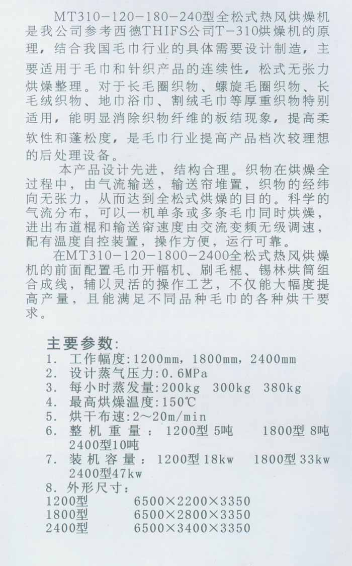 產品名稱:MT310-120-180-240型全松式熱風烘燥機