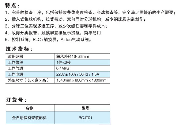 產(chǎn)品名稱:BCJT01全自動(dòng)保持架裝配機(jī)