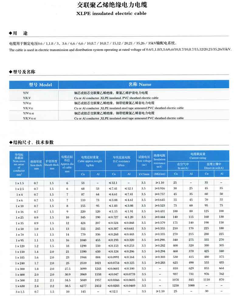 交聯聚乙烯絕緣電力電纜