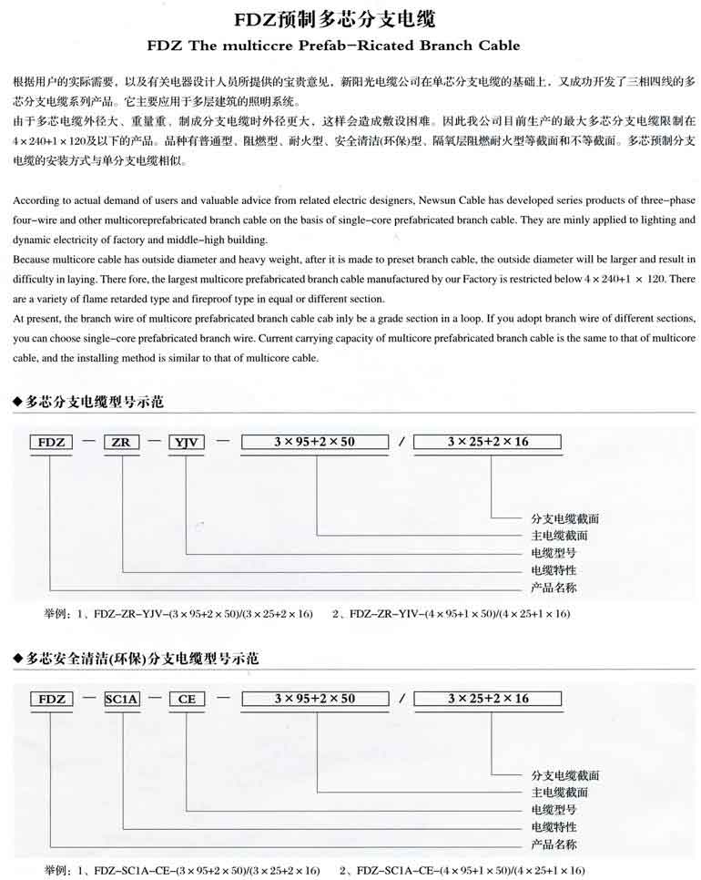 FDZ預制多芯分支電纜