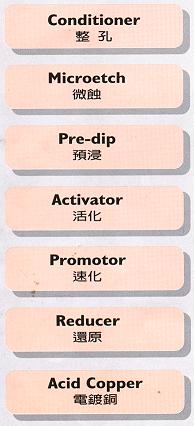直接金屬化制程 — Contamet ; 使用錫鈀膠體系統, 膠體能均勻吸附于孔內非導電 層而型成導電膜. 同時以銅做為連結, 大幅提高導電膜之導電度, 有助于后續電鍍銅之均勻覆蓋. Contamet制程適用于垂直或水平設備.