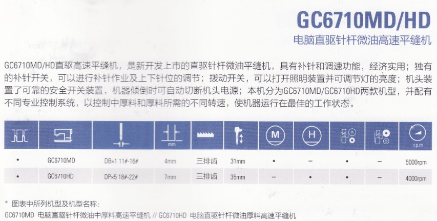 產(chǎn)品名稱:GC6710MD/HD平縫機