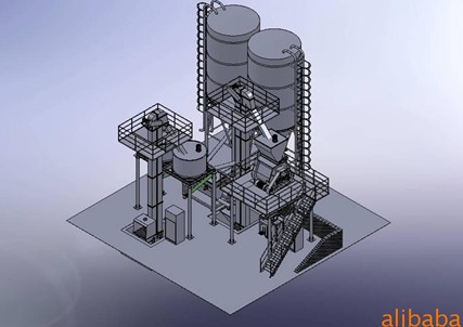 這套生產線是根據特種砂漿的工藝技術要求而專門設計。以7——10噸/時、每年300天單班計算,一年產量約為2.5萬噸,屬于小型生產線。
