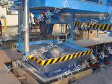 (三)水平開關(guān) 我公司的水平開關(guān)(即加砂閥),下砂口尺寸即為砂箱內(nèi)尺寸,砂箱即為定量裝置。我們?cè)陂y體上布滿20~40毫米寬長(zhǎng)孔,加砂過程中可以做到砂箱每一角落均有型砂加入,并且時(shí)間極短,一般20噸的型砂我公司的加砂閥一分鐘以內(nèi)即可加滿,并且可以做到多種砂箱在同一水平開關(guān)(加砂閥)中加砂且均勻可靠。 (四)起模機(jī)構(gòu) 我公司的起模機(jī)構(gòu)使用超大氣缸,四根頂桿固定在同一缸體上,而達(dá)到同步目的。一般我公司的起模機(jī)構(gòu)、頂桿直徑超過120毫米,調(diào)質(zhì)加工后鍍鉻、磨光處理。我公司的起模機(jī)構(gòu)一般可頂起10~30噸左右的砂箱,起模機(jī)構(gòu)的壽命可以說是無限的;同步性能和穩(wěn)定性極好,砂箱頂起時(shí),可以做到絕對(duì)同步,并且根本不可能出現(xiàn)絲毫晃動(dòng)。