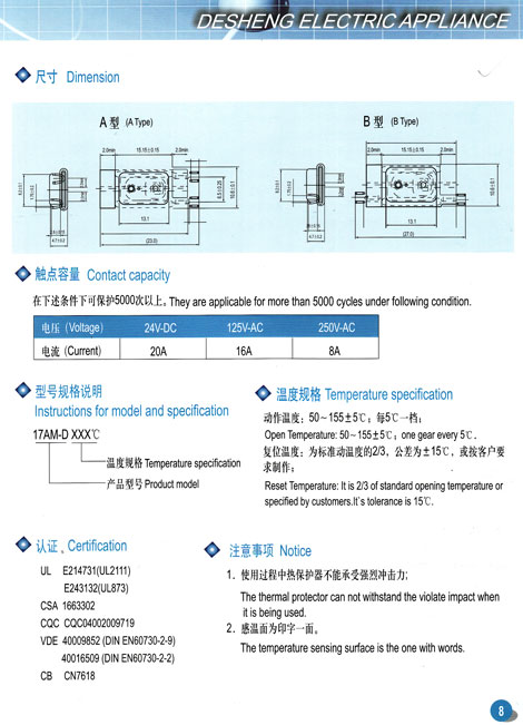 產(chǎn)品名稱:17AM-D系列熱保護器