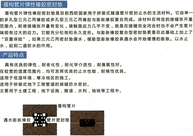 產品名稱:盾構管片彈性橡膠墊片