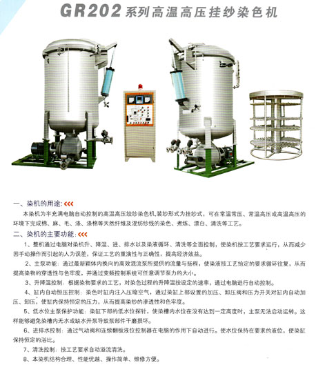 產(chǎn)品名稱:GR202系列 高溫高壓掛紗染色機(jī)