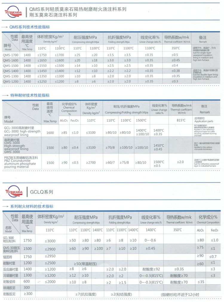 莫來石輕質隔熱澆注料系列