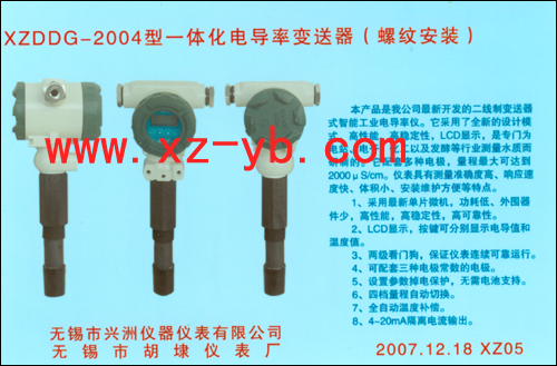 產品名稱:螺紋安裝:XZDDG-2004型一體化電導率變送器