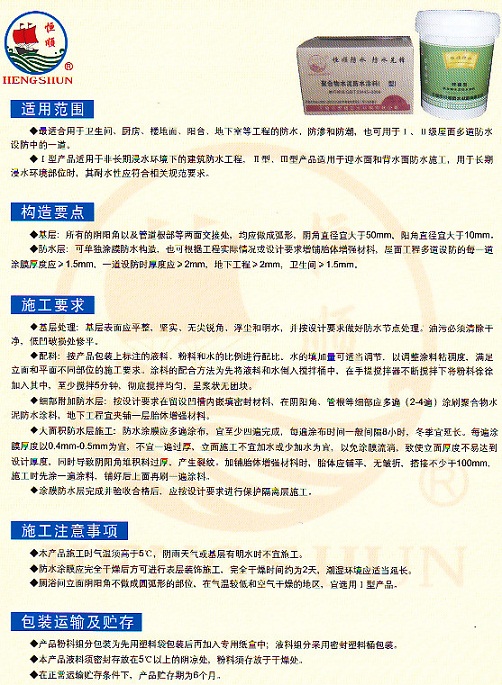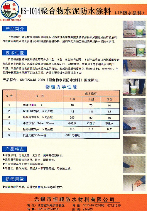 產品名稱:HS-1014聚合物水泥防水涂料