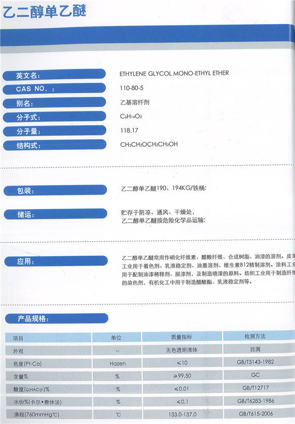 產(chǎn)品名稱:乙二醇單乙醚