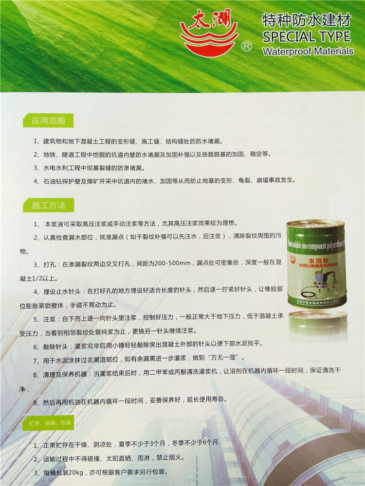 產品名稱:水溶性聚氨酯灌漿材料