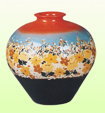 春回大地,花木蔥籠,萬象更新,寓意改革開放帶來了繁榮與昌盛。均陶瓶體為百花爭春畫面,瓶口至肩部,為紅霞萬丈畫面,下部為黑色,穩(wěn)重大方。整器堆貼技法細(xì)膩,動感畢現(xiàn),施以透明釉燒成